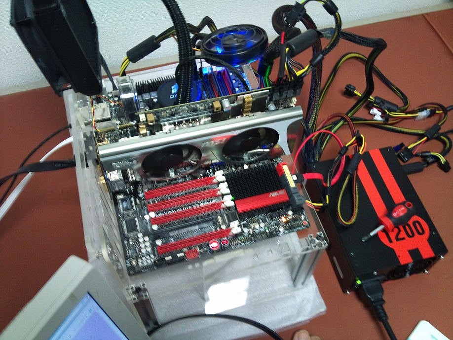 ちなみに、「何故、まな板?」と友人に聞かれましたが、グラボ差し替えるのにケースを移動させるのがメンドイんです(笑